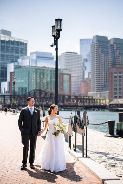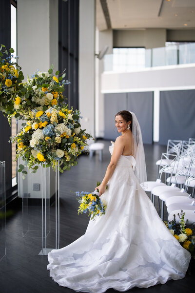 In the vibrant heart of Boston, Leah and Dan’s wedding exuded modern luxury and classic sophistication. A curated palette of buttery yellows, soft blues, and lush green accents transformed the cityscape into a scene of refined elegance and contemporary glamour.